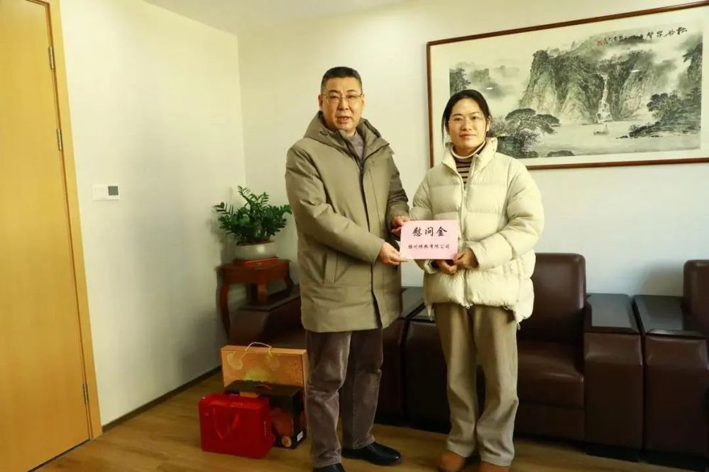 慰問組分別與揚州艦官兵虞樂、陳高峰家屬親切的交談,向揚州艦全體官兵劈波斬浪、亮劍深藍,用赤膽忠心守護祖國萬里海疆和人民幸福安康致以崇高的敬意,感謝家屬們投身國防和默默支持軍隊現(xiàn)代化建設(shè),感謝軍嫂們用柔弱的雙肩扛起家庭重?fù)?dān),并代表公司全體職工送上了慰問物資、慰問金和新年祝福。