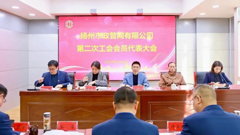 1月24日下午,揚(yáng)州市政管網(wǎng)有限公司第二次工會(huì)會(huì)員代表大會(huì)順利召開(kāi)。集團(tuán)黨委副書(shū)記徐飛、市總工會(huì)建設(shè)工會(huì)主任范華、集團(tuán)直屬聯(lián)合基層工會(huì)主席徐紫月應(yīng)邀參會(huì),公司工會(huì)會(huì)員代表參加會(huì)議。