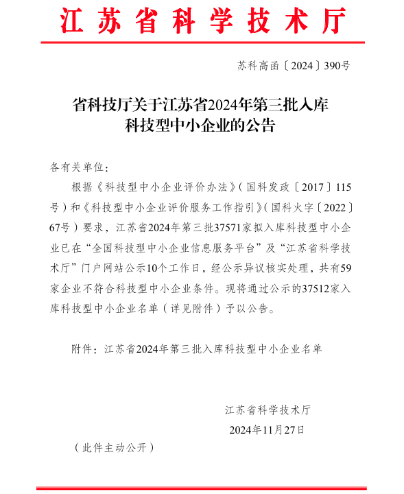 近日,江蘇省科學(xué)技術(shù)廳公布了江蘇省2024年第三批入庫科技型中小企業(yè)名單,管網(wǎng)公司下屬子公司運維公司榮獲江蘇省2024年“科技型中小企業(yè)”稱號?!翱萍夹椭行∑髽I(yè)”由江蘇省科技廳授予資質(zhì)并備案,是企業(yè)創(chuàng)新能力“認證”的重要標志。