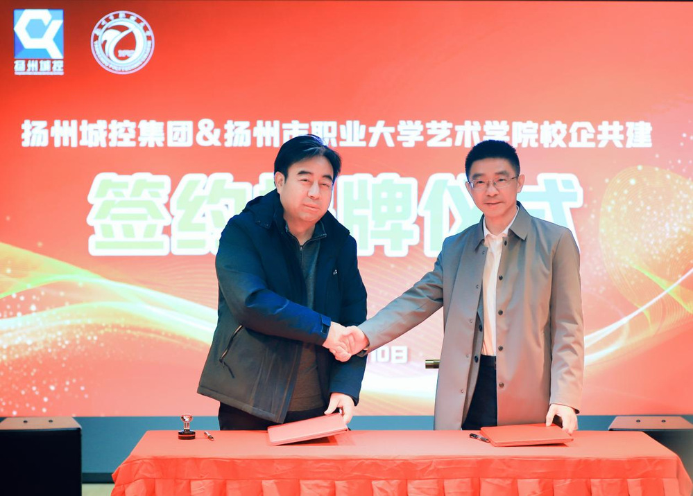 儀式上,城控集團(tuán)黨委副書記徐飛和揚(yáng)職大藝術(shù)學(xué)院黨總支書記毛益民簽訂了校企合作協(xié)議,為實(shí)習(xí)/實(shí)踐基地揭牌。雙方主要領(lǐng)導(dǎo)一致表示要秉承“人才培養(yǎng)、資源融通、交流合作、共謀發(fā)展”的理念,以更加緊密、深入的合作,為廣大學(xué)子提供豐富的實(shí)踐機(jī)會(huì)和廣闊的成長空間,為城控集團(tuán)文旅融合產(chǎn)業(yè)注入新鮮活力和創(chuàng)意源泉,在互學(xué)互鑒、協(xié)同創(chuàng)新中推動(dòng)各自發(fā)展不斷邁上新臺(tái)階。