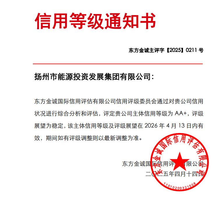 此次獲AA+主體信用評(píng)級(jí),充分體現(xiàn)了能源集團(tuán)優(yōu)異的資產(chǎn)質(zhì)量、穩(wěn)健的財(cái)務(wù)結(jié)構(gòu)和強(qiáng)勁的現(xiàn)金流管理能力。能源集團(tuán)將繼續(xù)以市場(chǎng)化為導(dǎo)向,做強(qiáng)做優(yōu)做大燃?xì)?、供熱、新能源、“雙碳”核心業(yè)務(wù),為推動(dòng)揚(yáng)州市能源轉(zhuǎn)型和綠色發(fā)展貢獻(xiàn)更大力量。