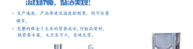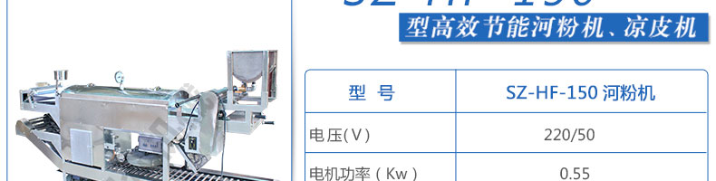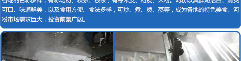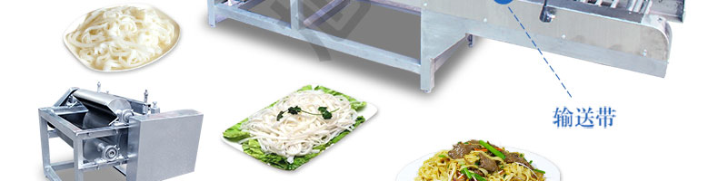 SZ-HF-150高效節能河粉機,用高效節能河粉機生產的河粉,完整保全了大米的營養成分,河粉品質一流,既營養豐富,又衛生可口、美味無窮。
