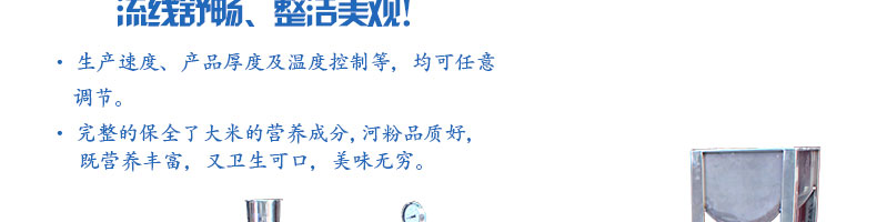 SZ-HF-500高效節能河粉機,生產速度、產品厚度及溫度控制等,均可任意調節