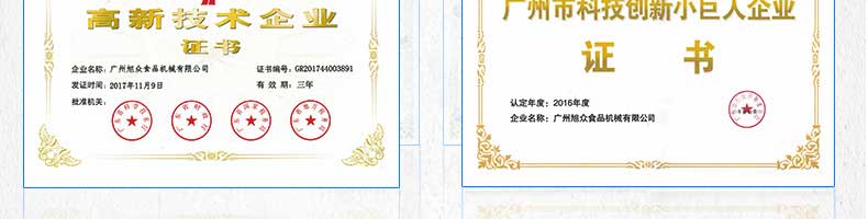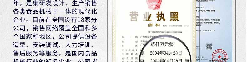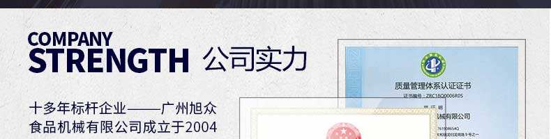 廣州旭眾食品機(jī)械有限公司是一家集科研開(kāi)發(fā),生產(chǎn)設(shè)計(jì),營(yíng)銷(xiāo)服務(wù)為一體的現(xiàn)代化生產(chǎn)企業(yè)。現(xiàn)代化生產(chǎn)車(chē)間,精湛制造技術(shù),所產(chǎn)機(jī)械歷經(jīng)市場(chǎng)重重考驗(yàn),不斷贏得海內(nèi)外客戶(hù)的贊譽(yù)。