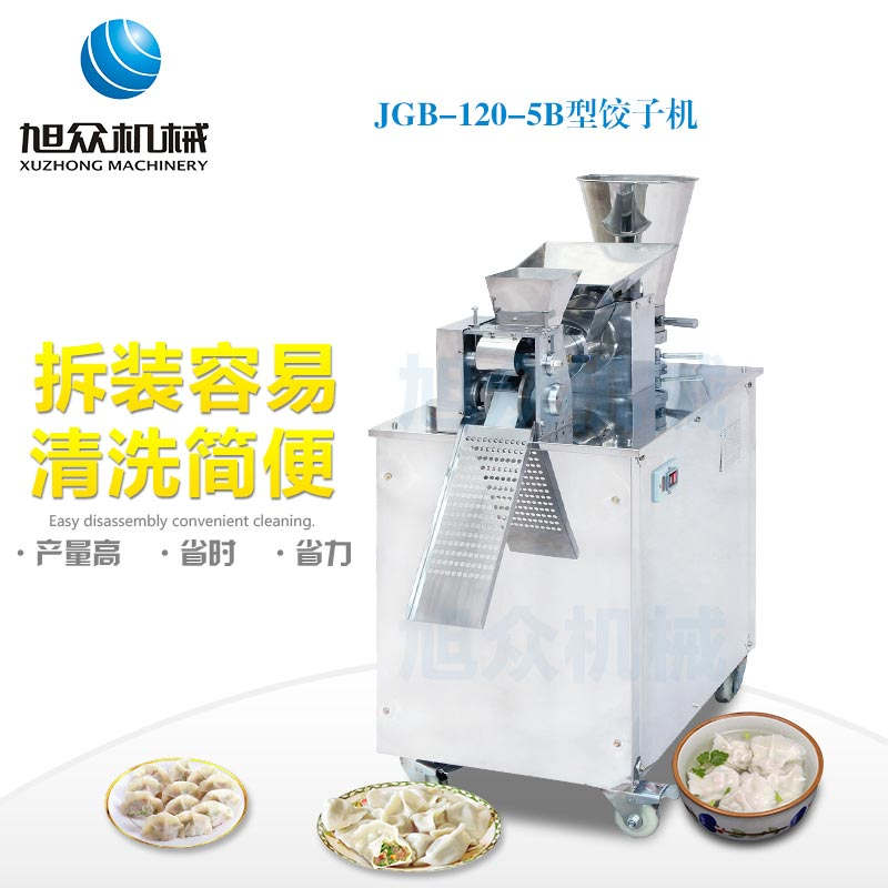 JGB-120-5B型餃子機,本機是一款可生產各種肉餡、肉菜混合餡、全菜餡及其他種餡餃子的設備。一機多用途,只要更換模具,就可制作不同的食品,如春卷、餛飩、咖喱角、鍋貼等。適用于賓館、飯店、餐廳、團體食堂加工,幼兒園、速凍餃子生產。
