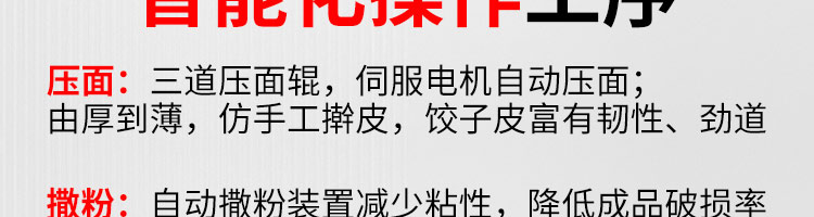 JGB-10型一體式餃子機,制皮成型一體餃子機,科技化生產/人性化設計。餃型可蒸、可炸、可煮,可適應不同場合的客戶需求。功能、智能一體,以自動化科技與過硬質量貼心服務。