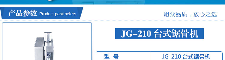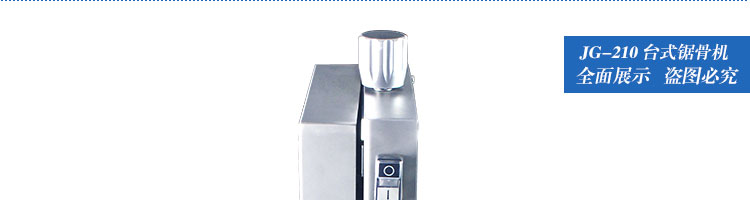 JG-210臺式鋸骨機(jī),適用于各類骨頭,冷凍肉,帶魚骨,冰塊,冷凍魚的分割。采用全不銹鋼材料制作,具有工作效率高,操作安全的特點(diǎn)。廣泛適用于食品加工廠,屠宰場,肉類加工廠等