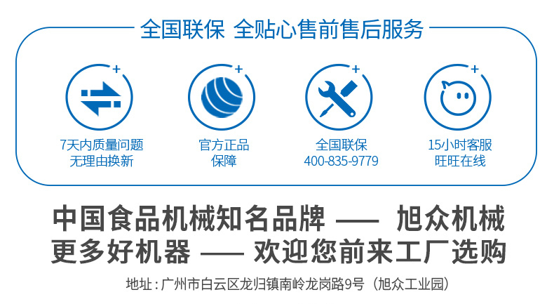 廣州旭眾食品機(jī)械有限公司是一家集科研開發(fā),生產(chǎn)設(shè)計,營銷服務(wù)為一體的現(xiàn)代化生產(chǎn)企業(yè)。現(xiàn)代化生產(chǎn)車間,精湛制造技術(shù),所產(chǎn)機(jī)械歷經(jīng)市場重重考驗,不斷贏得海內(nèi)外客戶的贊譽(yù)。