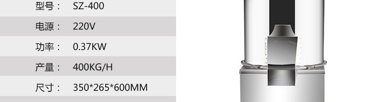 名稱SZ-400剎菜機 電源220v 功率0.37kw 產量400千克/小時 尺寸350*265*600mm 重量21kg 規格 其他
