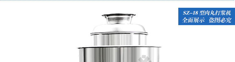 SZ-18型肉丸打漿機,本機裝肉用桶子采用不銹鋼制造,達到衛生要求,肉桶外罩和桶底裝有冷卻裝置,確保肉漿新鮮。比手工的打漿更精細,所產肉丸、魚丸彈性好,色澤潔白。