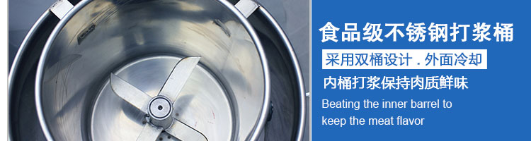 SZ-22型肉丸打漿機,本機裝肉用桶子采用不銹鋼制造,達到衛生要求,肉桶外罩和桶底裝有冷卻裝置,確保肉漿新鮮。比手工的打漿更精細,所產肉丸、魚丸彈性好,色澤潔白。