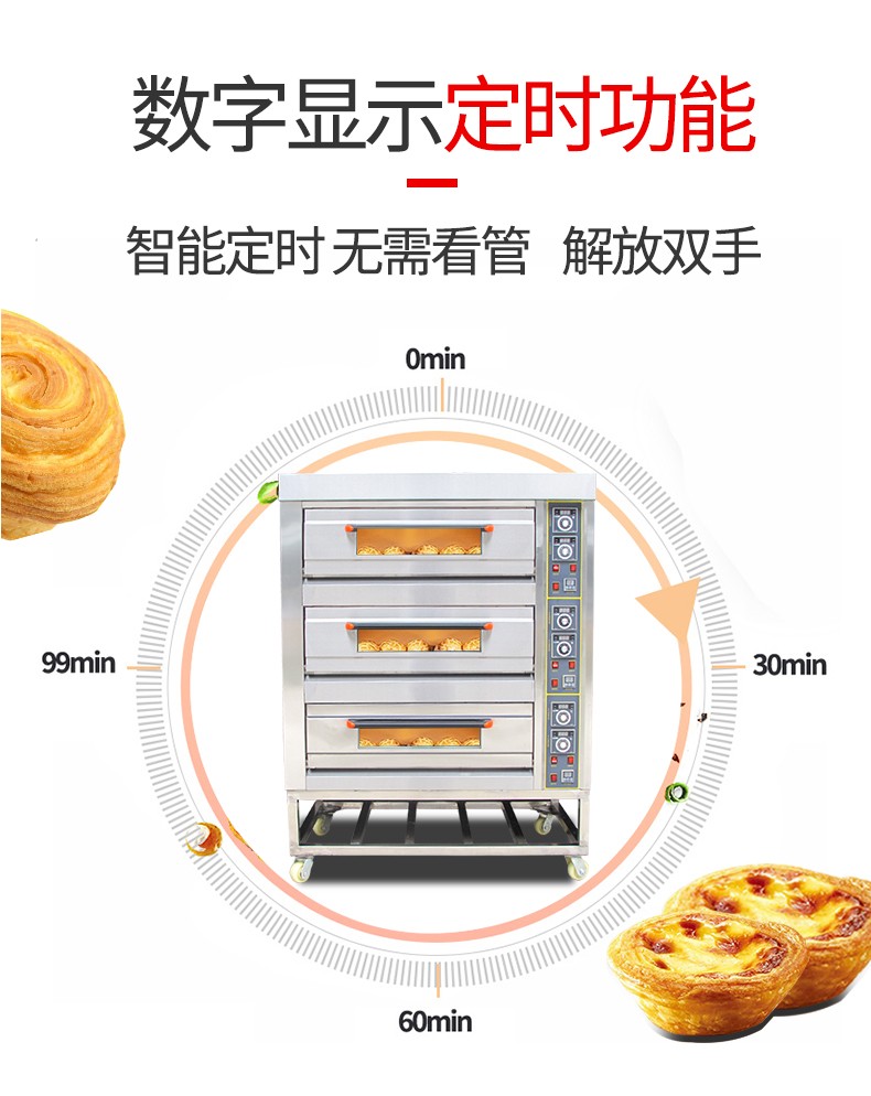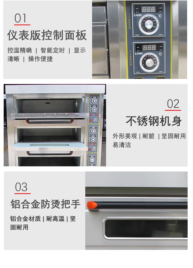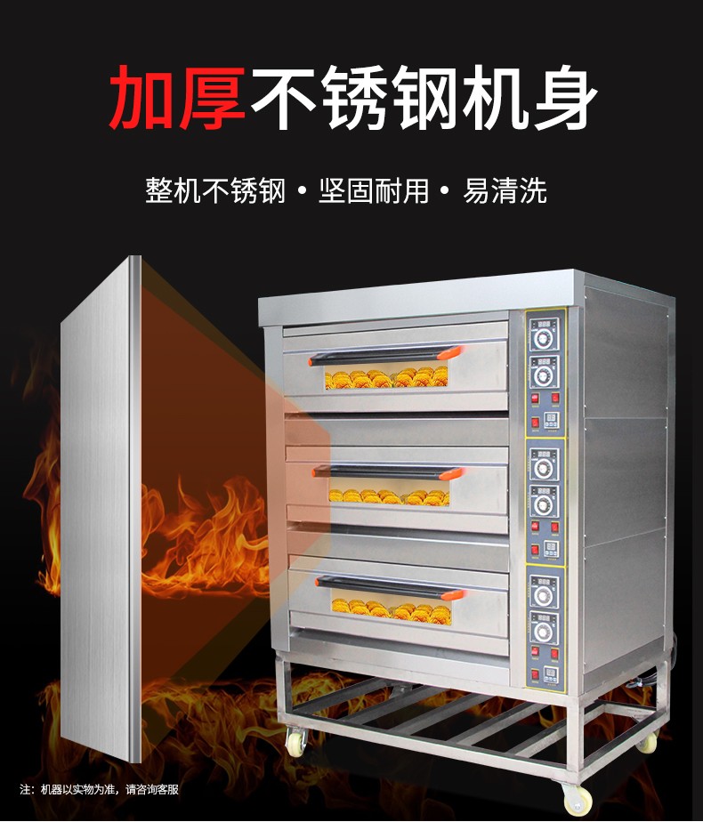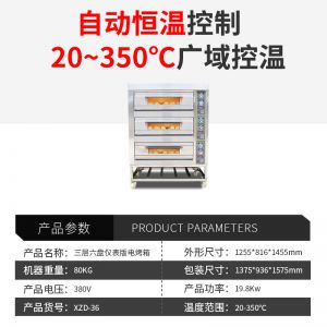 名稱三層六盤儀表版電烤箱 電源380V 功率19.8Kw 產量 尺寸1255*816*1455 mm 重量240KG 規格三層六盤 其他