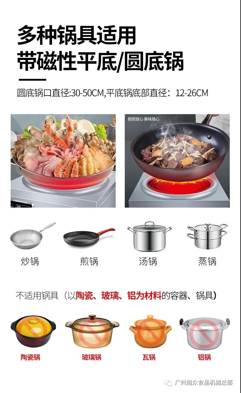商用電磁爐和大功率電磁灶用在食堂,學校,火車上,輪船上,酒店,餐館里,它們需要長時間的處于工作狀態,電磁爐不受溫度驟變能力影響,適用于各種場地使用。